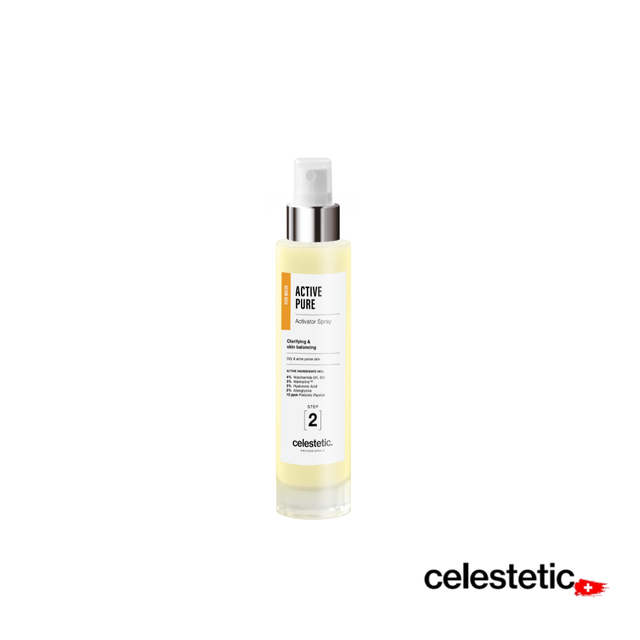 Le spray Active Pure de Celestetic Suisse est spécialement formulé pour les peaux à tendance acnéique ou congestionnée. Il purifie, régule le sébum et apaise l’inflammation, tout en renforçant la flore cutanée grâce aux probiotiques, pour une peau nette et équilibrée.