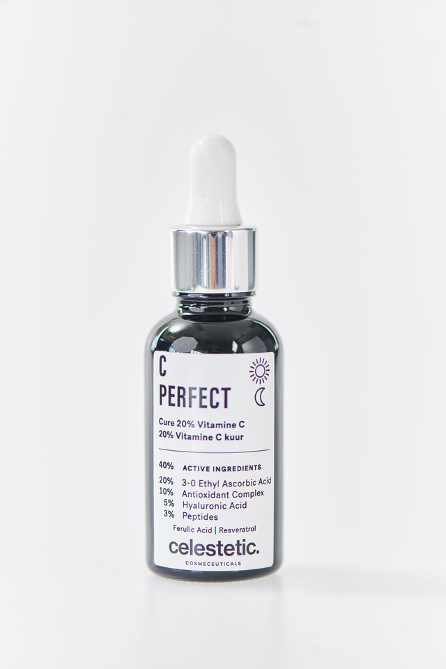 Le sérum C PERFECT est un soin hautement concentré en vitamine C liposoluble avec 20% d’Ethyl Ascorbic Acid 3-O, 10% de complexes antioxydants et 5% d’acide hyaluronique. Il offre un effet coup d’éclat immédiat, atténue les taches, les rides et les imperfections, pour un teint visiblement plus lisse et lumineux.
