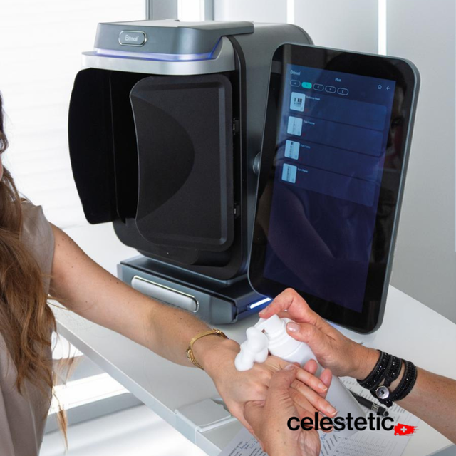 🔬 Technologies lumineuses : lumière blanche, polarisée, Wood, UV, rouge et RBX pour révéler rides, taches, inflammations et perte de collagène.